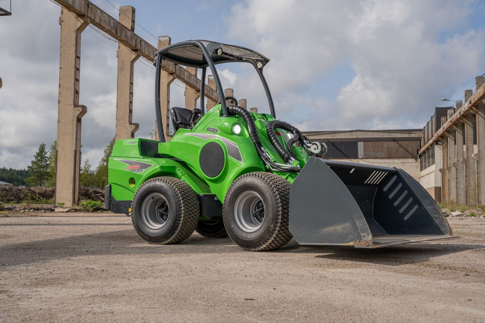 • Optimale Stabilität und Sicht: Die Konstruktion des Laders sorgt für Stabilität und bietet dem Bediener eine ausgezeichnete Sicht auf Anbaugeräte und Arbeitsbereich.