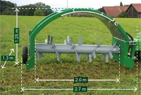Der TG 201 Kompostwender ist speziell für die Bedürfnisse von Landwirtschaftsbetrieben, Gärtnereien, Biobetrieben und kleinen Kommunen mit einem Kompostierungsvolumen bis zu 500 Jahrestonnen konzipiert. Dieses Modell kombiniert kompakte Abmessungen mit einer beeindruckenden Leistungsfähigkeit, wodurch es sich ideal für den Einsatz in verschiedenen Umgebungen eignet. Hauptmerkmale: • Hohe Umsetzleistung: Bis zu 300 m³/h, ermöglicht eine effiziente und schnelle Kompostierung. • Kompakte und wendige Bauweise: Mit einer Transportlänge von nur 2,7 Metern und einer Umsetzwellenbreite von 2,0 Metern ist der TG 201 leicht zu manövrieren und zu transportieren. • Robuste Konstruktion: Die massive Bogenkonstruktion des Tunnels aus 5 mm Stahl und die Pulverbeschichtung bieten hohe Stabilität und Korrosionsschutz. • Effiziente Kompostierung: Die gewuchtete Umsetzwelle sorgt für eine korrekte Durchmischung des Materials, was eine schnelle aerobe Kompostierung innerhalb von 8 - 12 Wochen ermöglicht. Technische Daten: • Arbeitsbreite: Bis zu 2,2 Meter • Tunnelhöhe (Innenmaß): 1,15 Meter • Gewicht: Ca. 600 kg • Miete (Breite x Höhe): 2,0 x 1,0 Meter Grundausrüstung: • Tunnel mit Chromstahlblechen und großem Stützrad außen am Tunnel für einfache Manövrierbarkeit. • Mechanisch betätigte Zuführschilder und Vliesführungen vorne und hinten. • Standard-Kupplungssystem, kompatibel mit Kompaktladern. Voraussetzungen für den Kompaktlader: • Gesamtbreite bis 1,7 Meter und eine Mindestleistung von 30 PS (ideal 35 PS). • Hydrauliksystem mit einem Arbeitsdruck von mindestens 200 bar und einem Öldurchfluss von mindestens 40 l/min. Optionale Erweiterungen: • Hydraulische Schnellkupplung für eine noch einfachere Anbindung an den Kompaktlader. • Wasserspritzbalken mit Düsen zur Feuchtigkeitsregulierung des Komposts. Der TG 201 Kompostwender ist die perfekte Wahl für Betriebe, die eine zuverlässige, leistungsstarke und dabei kompakte Lösung für ihre Kompostierungsbedürfnisse suchen. Mit seiner einfachen Bedienung, geringen Wartungsanforderungen und vielseitigen Einsatzmöglichkeiten bietet der TG 201 eine optimale Unterstützung für eine nachhaltige und effiziente Kompostproduktion. Der TG 201 Kompostwender ist speziell für die Bedürfnisse von Landwirtschaftsbetrieben, Gärtnereien, Biobetrieben und kleinen Kommunen mit einem Kompostierungsvolumen bis zu 500 Jahrestonnen konzipiert. Dieses Modell kombiniert kompakte Abmessungen mit einer beeindruckenden Leistungsfähigkeit, wodurch es sich ideal für den Einsatz in verschiedenen Umgebungen eignet. Hauptmerkmale: • Hohe Umsetzleistung: Bis zu 300 m³/h, ermöglicht eine effiziente und schnelle Kompostierung. • Kompakte und wendige Bauweise: Mit einer Transportlänge von nur 2,7 Metern und einer Umsetzwellenbreite von 2,0 Metern ist der TG 201 leicht zu manövrieren und zu transportieren. • Robuste Konstruktion: Die massive Bogenkonstruktion des Tunnels aus 5 mm Stahl und die Pulverbeschichtung bieten hohe Stabilität und Korrosionsschutz. • Effiziente Kompostierung: Die gewuchtete Umsetzwelle sorgt für eine korrekte Durchmischung des Materials, was eine schnelle aerobe Kompostierung innerhalb von 8 - 12 Wochen ermöglicht. Technische Daten: • Arbeitsbreite: Bis zu 2,2 Meter • Tunnelhöhe (Innenmaß): 1,15 Meter • Gewicht: Ca. 600 kg • Miete (Breite x Höhe): 2,0 x 1,0 Meter Grundausrüstung: • Tunnel mit Chromstahlblechen und großem Stützrad außen am Tunnel für einfache Manövrierbarkeit. • Mechanisch betätigte Zuführschilder und Vliesführungen vorne und hinten. • Standard-Kupplungssystem, kompatibel mit Kompaktladern. Voraussetzungen für den Kompaktlader: • Gesamtbreite bis 1,7 Meter und eine Mindestleistung von 30 PS (ideal 35 PS). • Hydrauliksystem mit einem Arbeitsdruck von mindestens 200 bar un
